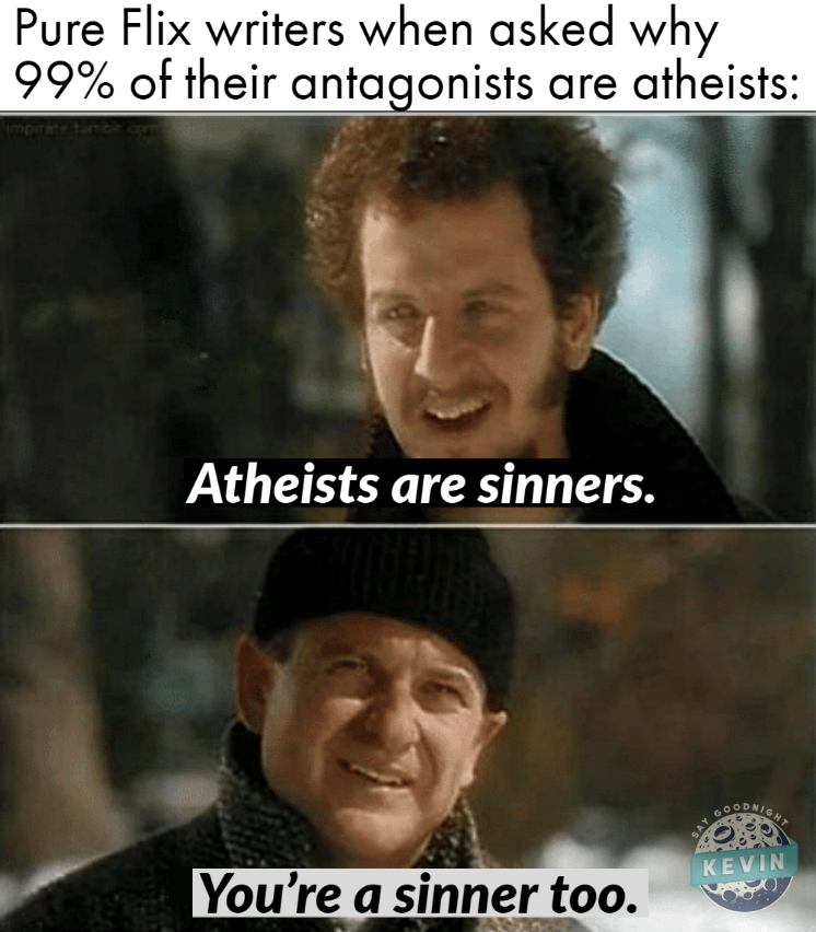 - Funny how their screenwriters think “Atheist” and “Antagonist” are automatically synonmous…