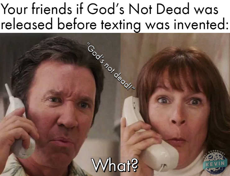 - “Call your friends and tell them God’s not dead!”